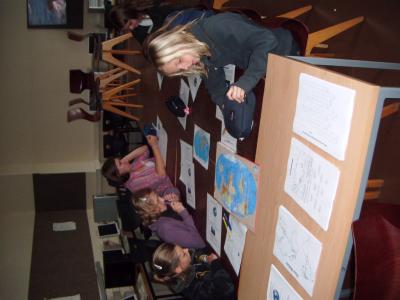 Im zweiten Schritt nahmen sich die Schüler von einem vorbereiteten Tisch das Arbeitsblatt zu den Wasserreserven auf der Erde, lasen sich dieses durch und kennzeichneten nun die Wasservorkommen auf der Erde.
