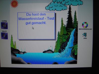 Die Schüler schauten sich das animierte Programm mit etwas Begeisterung an, diese lag darin begründet, dass einige den Wasserkreislauf schon aus der Grundschule kannten. Doch das hieß noch lange nicht, dass sie den Wasserkreislauf begriffen hatten. Das bewies der darauffolgende Test, welcher im Programm mit inbegriffen ist.